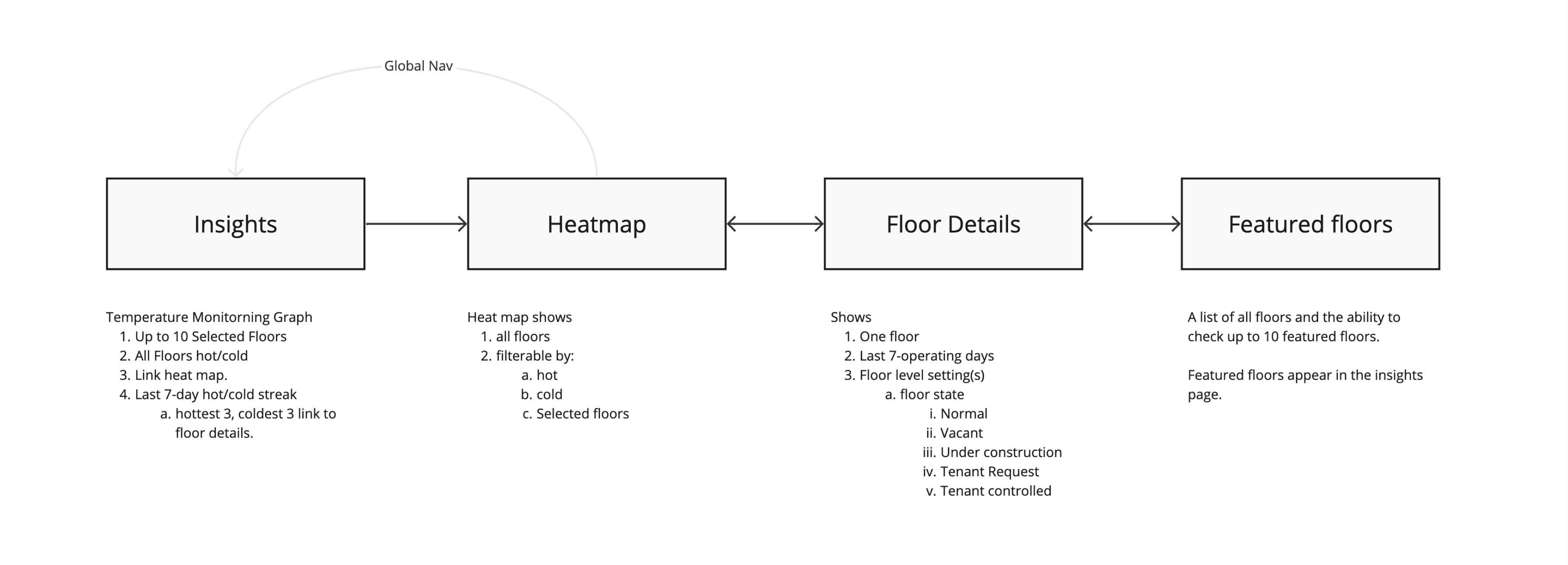 Missing operational context: There was no way to capture or share floor-specific conditions—like unoccupied areas or ongoing construction—which could justify temperature deviations. That information lived in engineers' heads, limiting collaboration and alert accuracy across teams.